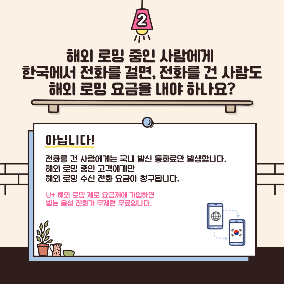 1번. 해외 로밍 중에 한국으로 전화를 하면