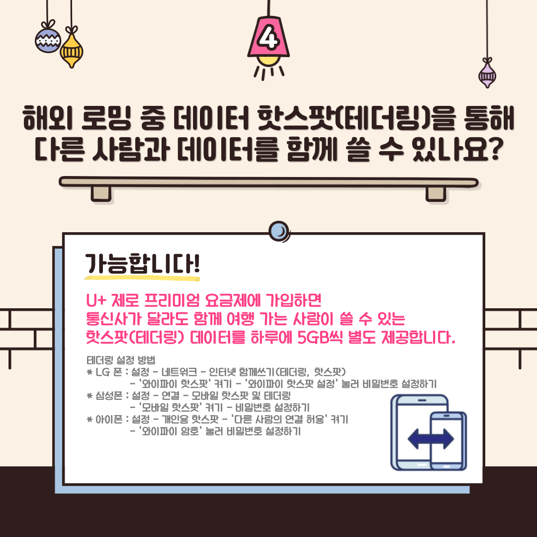 4번. 해외 로밍 중 데이터 핫스팟(테더링)을 통해