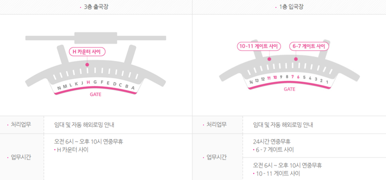 3층 출국장 H카운터에 위치한 로밍센터의 운영시간은