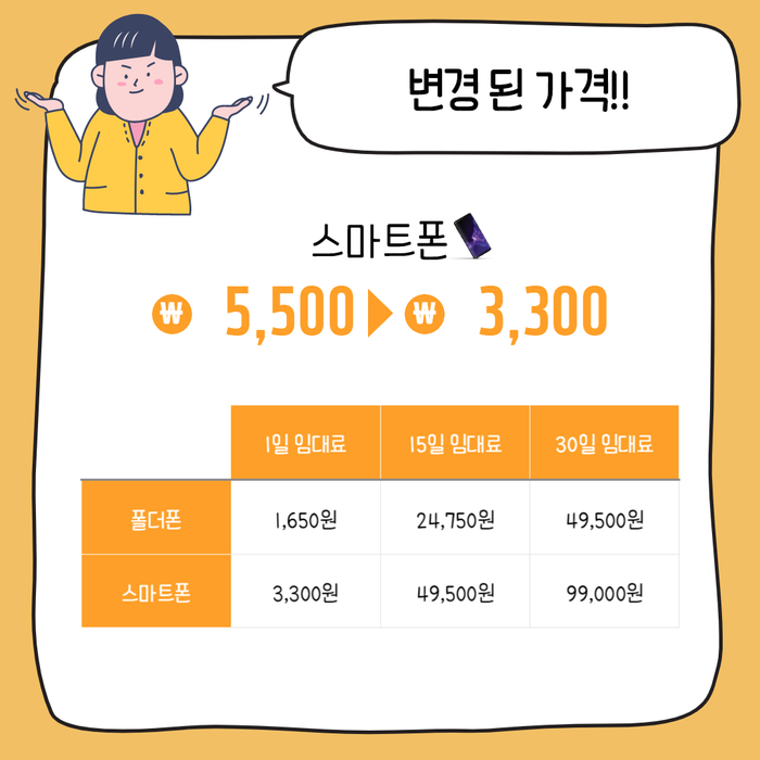 핸드폰과 스마트폰을 임대해드리고 있습니다 : D