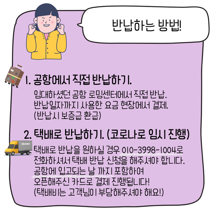 코로나로 인해 현재는 임시적으로 택배 반납도 가능해요~