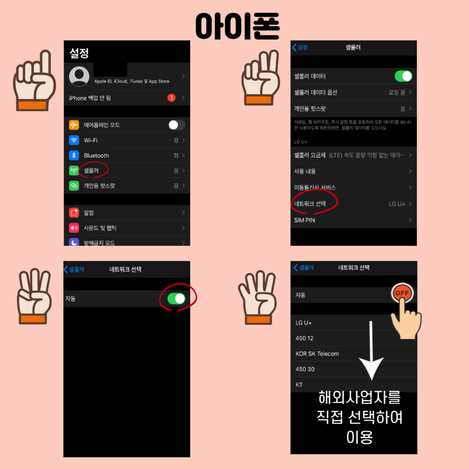 해외 이동통신사 설정해서 원활히 로밍 사용 하세요!!