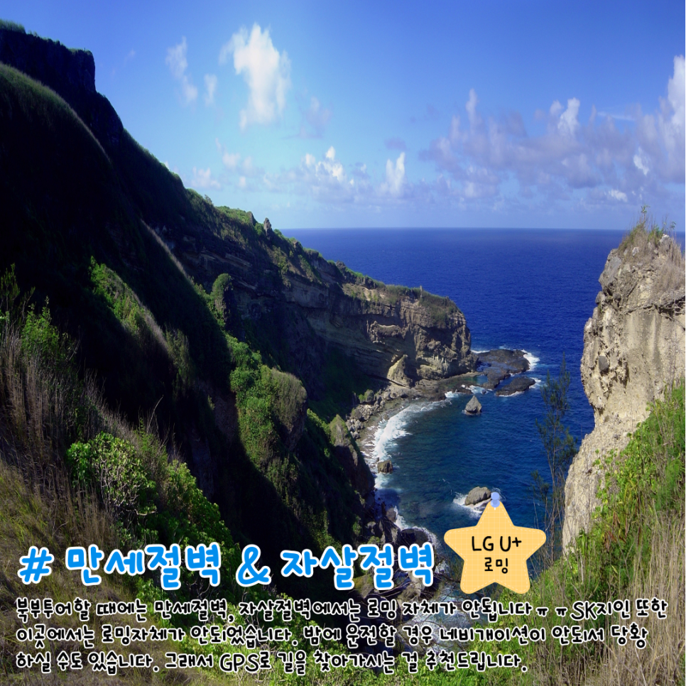 북부투어할 경우 만세절벽과 자살절벽에서는 로밍 자체가 안되더라구요ㅠㅠ