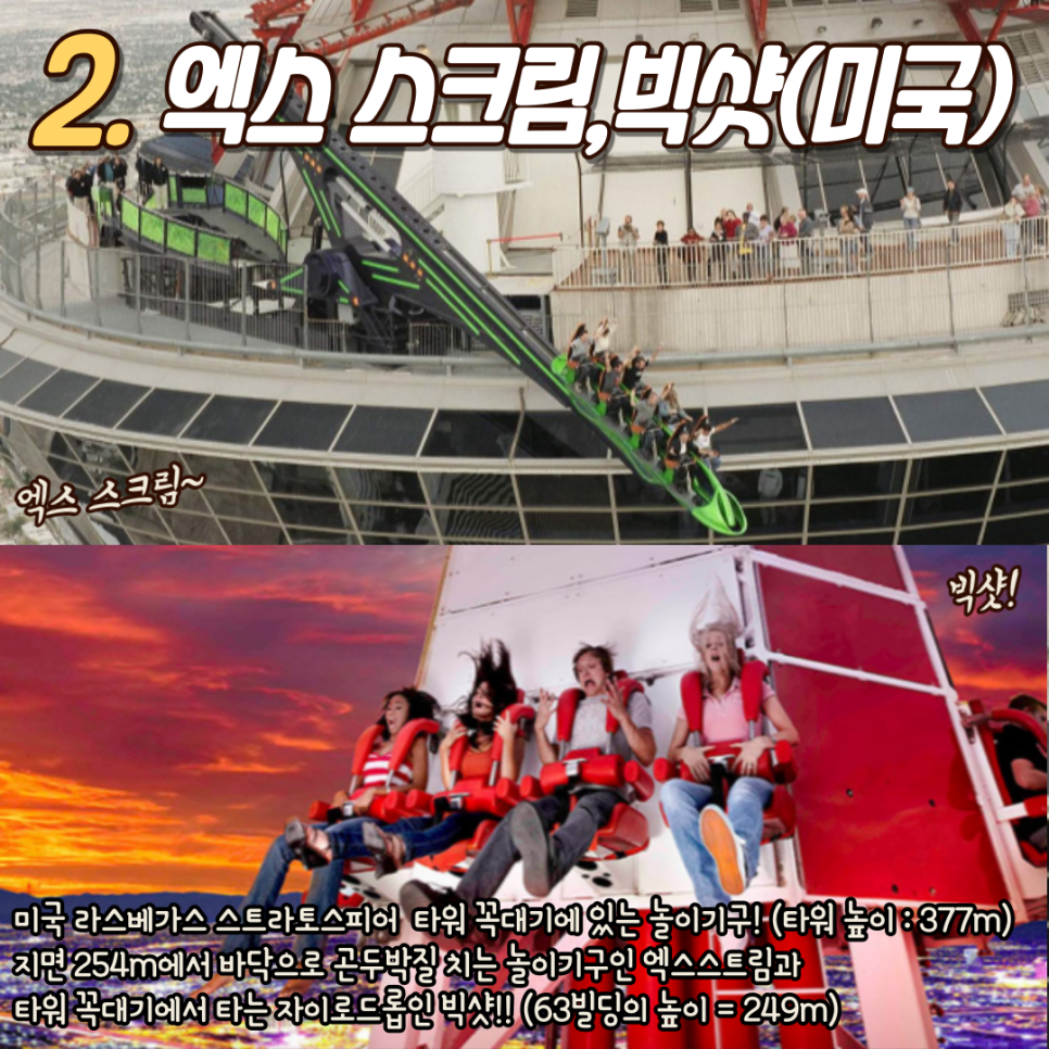 두 번째는 미국 라스베가스 스트라토스피어 타워 꼭대기에 위치한 놀이기구에요!